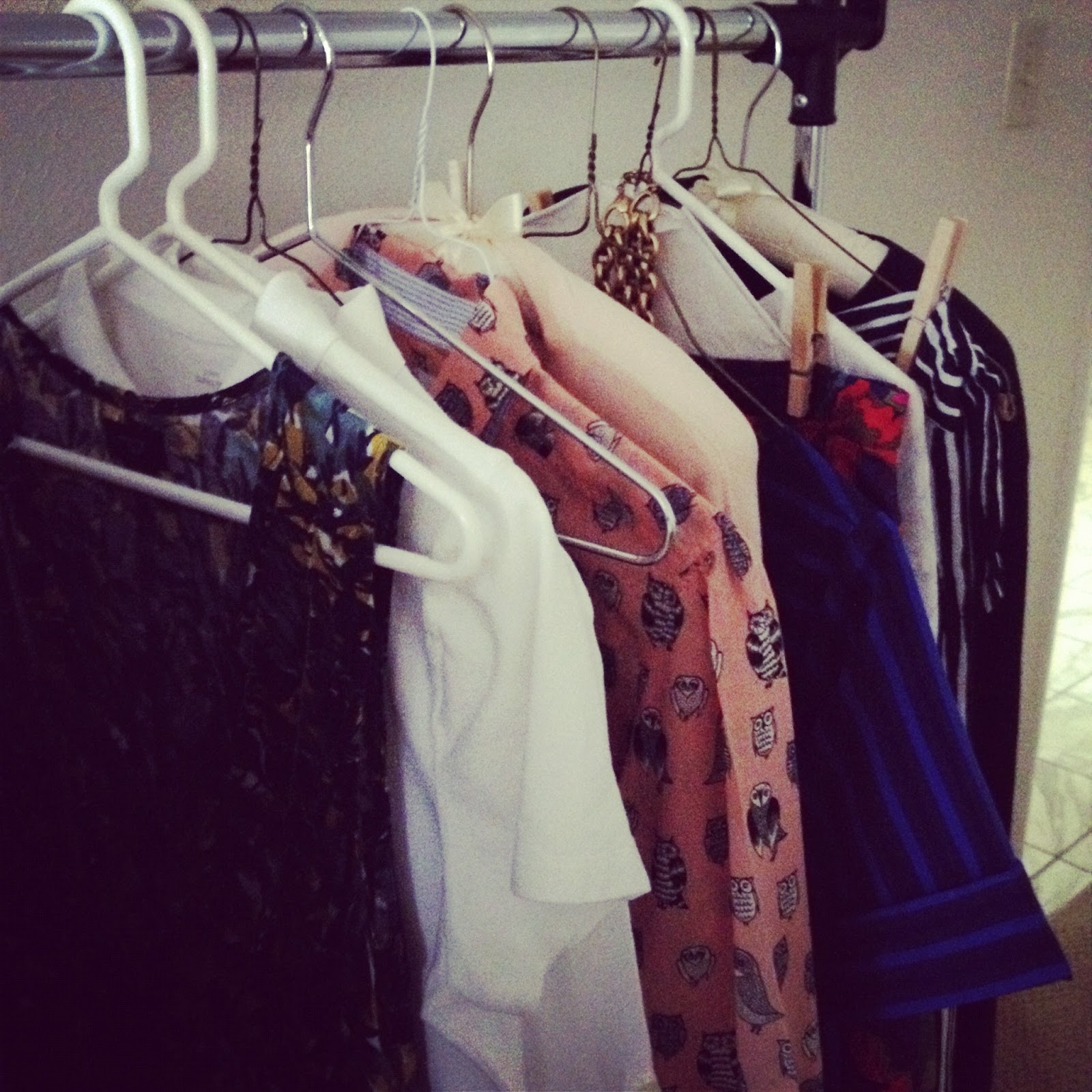 i'm packing: 1. a pair of cropped pants from banana republic several seasons ago (does that make them vintage?), 2. a new pair of j crew shorts and a pair of j crew shorts from way way back (again, vintage), 3. a silk skirt from j crew i bought on sale last year, 4. a casual dress from anthropologie that i had the hem lowered since it was a leetle bit too short when i sat down, and 5. a navy and white striped dress from banana republic to wear at the wedding. i also branched out and am packing two non-white tops: an old sleeveless top from anthropologie and a new anthropologie owl shirt, which i have already worn once and love. i will pack a few cardigans because sleeveless is not always a good look for me and a few white shirts, too.